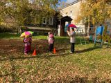 В старшей группе прошло спортивное развлечение «Осенние забавы». Развлечение проходило на свежем воздухе, группа разделилась на две команды, дух соперничества вызывал множество положительных эмоций, дети, во время прохождения спортивной полосы препятствий, в игре, выполняли различные эстафеты: «Донеси осенний лист»; «Спрячься от дождя под зонтиком»; «Сухие ножки идут по дорожке»; «Соберем съедобные грибы»