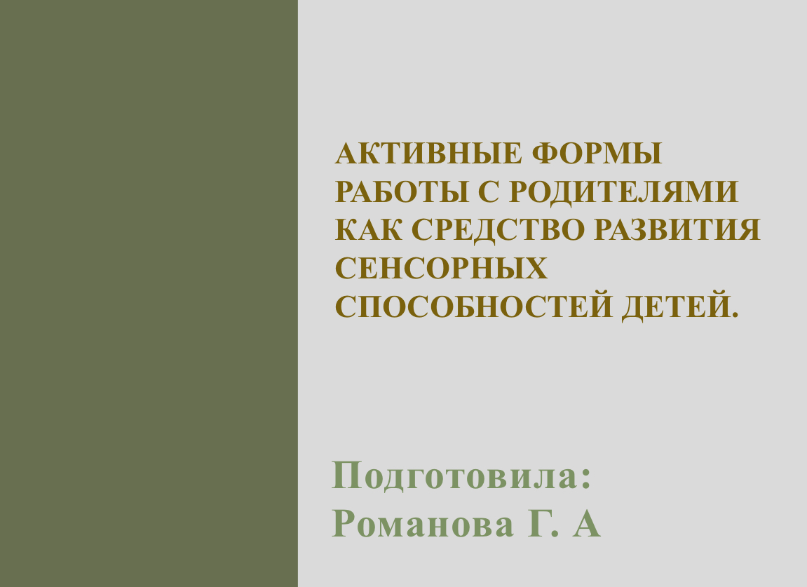 | Конспект нетрадиционного родительского собрания «Сенсорное развитие детей дошкольного возраста» |