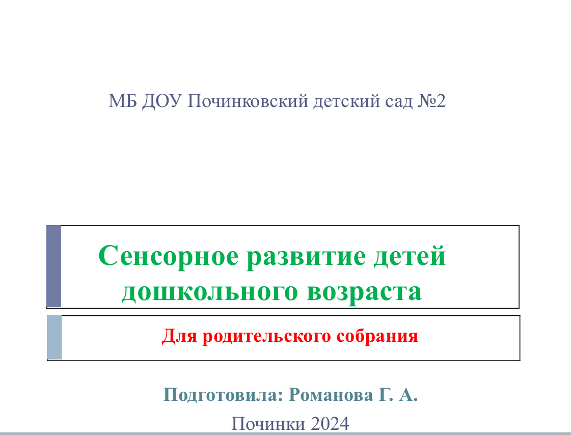 | 23 января 2025 года на базе МБ ДОУ Починковский детский сад №2 состоялось 3 заседание РМО специалистов. Романова Галина Анатольевна транслировала родительское собрание "Формирование сенсорных эталонов у детей дошкольного возраста посредством дидактических игр в детском саду" |